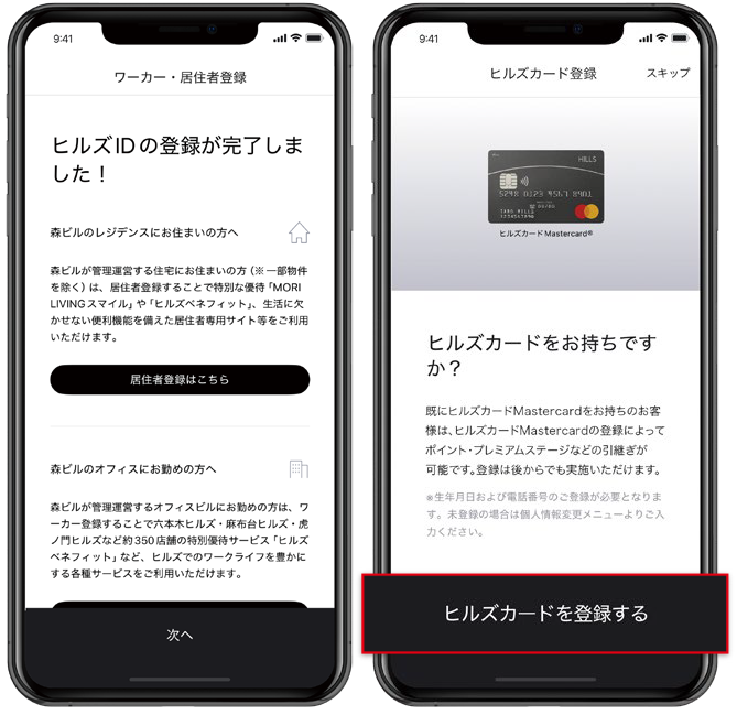 ※ヒルズIDのユーザー登録をしていただくと、ヒルズカード会員様となります